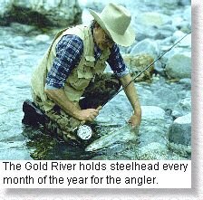 are inaccessible but, other sections will astound you for the number of fish that they repeatedly hold every month of the year. To experience the Gold is to truly experience the 'wild' aura of west coast steelhead