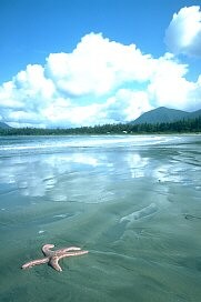 Pacific Rim National ParkThe Long Beach Unit is located between the villages of Ucluelet and Tofino, and named after the 16 km (10 miles) sandy beach of Wickaninnish Bay. Best known for its incredible beaches and rugged rocky headlands, Long Beach is a favorite for those wishing to hike the sandy trails, beachcomb, enjoy the pounding surf, the dense coastal rainforest or view an impressive array of bird and wildlife. Each spring over 20,000 grey whales migrate through the park waters. The Wickaninnish Centre is an intrepitive centre located at the water's edge and should be visited to learn about the park's marine ecology and the ocean and forest environment.